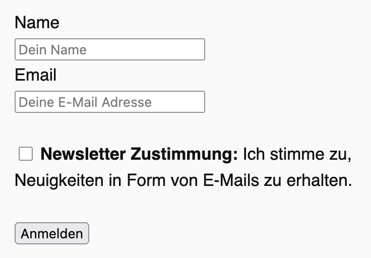 Füngt du nun dieses HTML auf eine Seite oder im Footer deiner WordPress Seite als Widget ein, dann erscheint ein enfaches Anmeldeformular für den Newsletter.